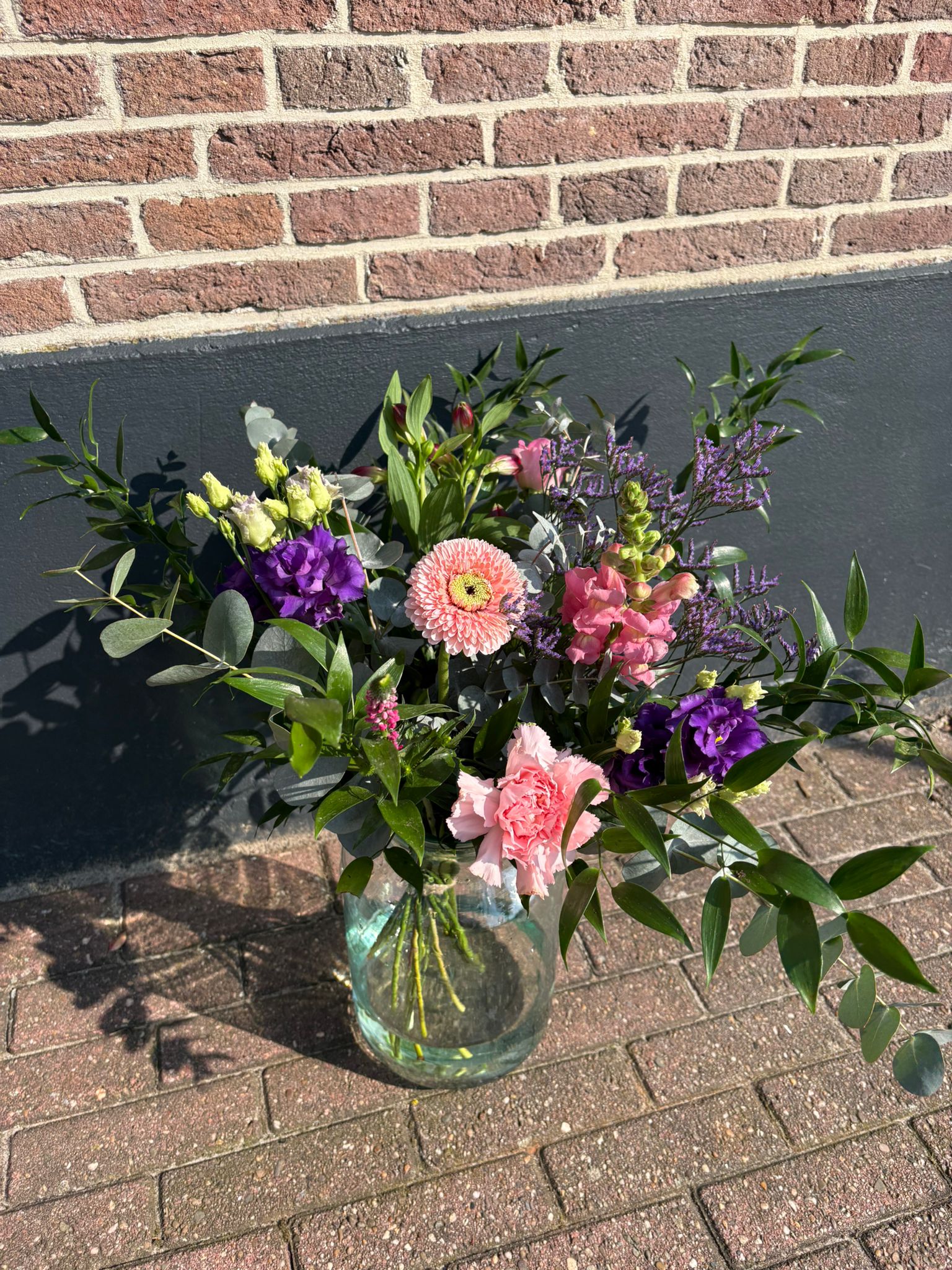 Een met zorg samengesteld traditioneel boeket, geïnspireerd op Kirsten’s favoriete bloemen.
